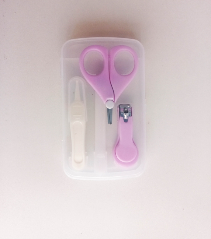 This set nail cutter set has a Nail Clipper, Scissors, File and Tweezer. Available in a light purple colour, the best gift pack for a newborn. Inside the plastic pack, all items are placed in a holder case. This prevents the kit from any damage and holds items perfectly.
